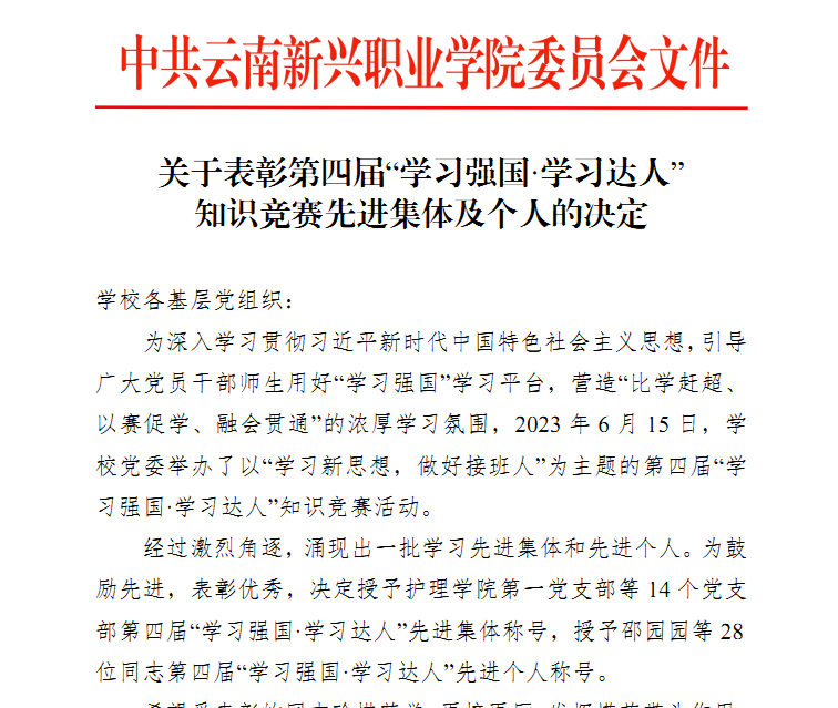 (全文如下)学校各基层党组织:为深入学习贯彻习近平新时代中国特色社会主义思想,引导广大党员干部师生用好“学习强国”学习平台,营造“比学赶超、以赛促学、融会贯通”的浓厚学习氛围,2023年6月15日,学校党委举办...