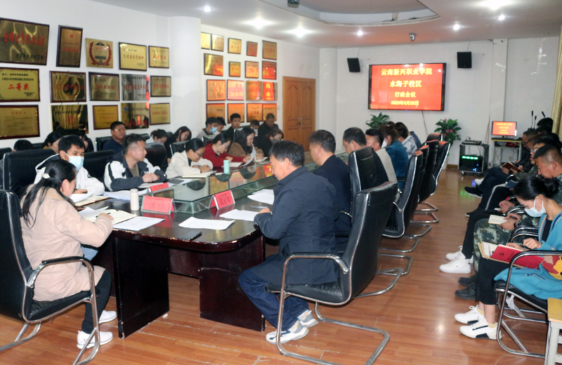 3月28日20:00,水海子校区在行政楼二楼会议室召开三月份行政工作例会。参会人员有分管水海子校区副校长潘琼,水海子管委会主任武正文,水海子校区全体中层干部、学工科长、团委工作负责人、教研室主任等。会议由武正文...
