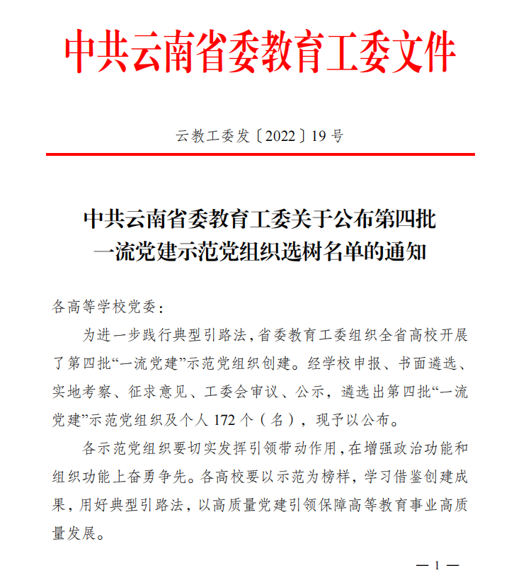 近日,省委教育工委公布了云南省第四批高校“一流党建”示范党组织选树名单,学校护理学院第一党支部与sunbet申搏官方网站第二党支部被选树为“一流党建”示范党支部。“一流党建”示范项目创建是按照云南省创建高校一流党建工作安排...