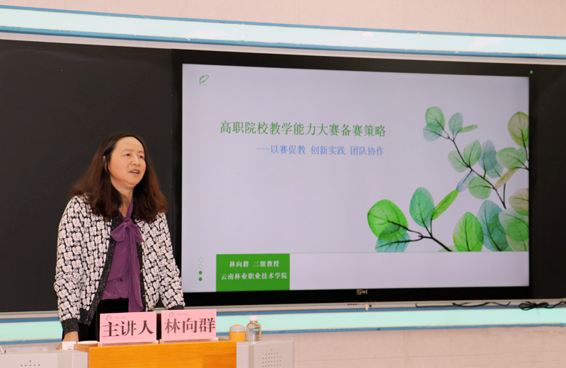 为深入贯彻落实职业教育改革精神,全面提升教师教学创新能力和信息化教学水平,助力教师教学能力提升,更好的备战2025年省级职业院校教师教学能力比赛,2025年3月26日学校邀请了云南林业职业技术学院副校长林向群二...
