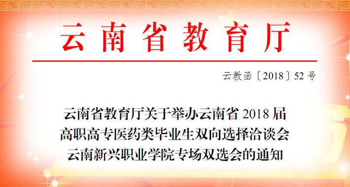 云南省教育厅关于召开云南省2017届高职高专医药类毕业生双向选择洽谈会sunbet申搏官方网站专场双选会的通知