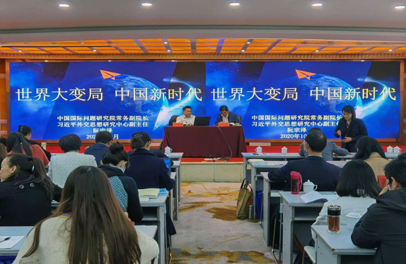 中国国际问题研究院常务副院长阮宗泽作了“世界大变局 中国新时代”的专题报告,对当前国际形势作了具体分析。阮宗泽指出,当今世界正经历百年未有之大变局,新冠疫情全球大流行使这个大局加速演变,我国今后将会遇到更多逆风逆水的外部环境,分析国际形势要树立正确的“三观”(历史观、大局观、角色观)。