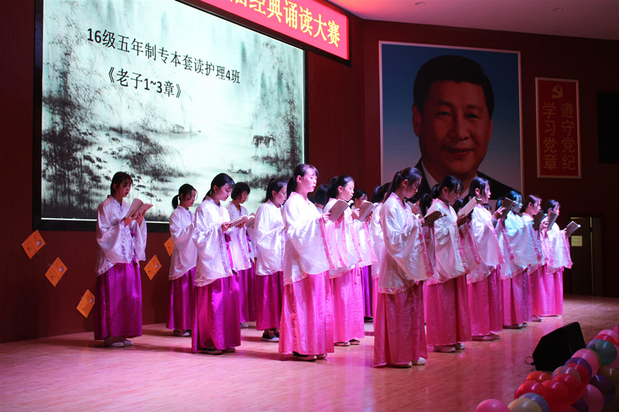 本次活动共分三个阶段依次有序进行,初赛: 11月13日,中午12:00在多功能厅举行, 16级、17级、18级三个年级,共有28个班级参加此次活动,同学们积极参与诵读传唱经典,参与热情十分高涨。复赛: 11月15日,中午12:00在学院主席台举行,进入复赛的有16个班级,通过的严密复赛筛选,最终有10个班级突出重围,进入了决赛。