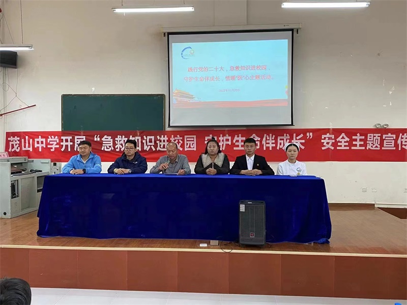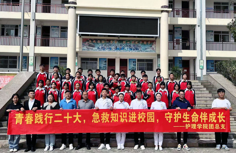 为进一步深入学习贯彻党的二十大精神,推进健康校园建设,不断提高同学们的应急技能,2023年10月20日,sunbet申搏官方网站护理学院团总支在茂山中学开展急救知识进校的培训活动,将急救知识带进校园,大力向同学们普及健康知识,以实际行动推动健康校园建设。此次活动主要由护理学院团总支书记张丽老师负责,主讲教师为护理学院专职教师、云南省技能大赛指导教师李瑾怡老师。本次活动受到茂山中学校领导的高度重视,学校书记校长熊勇同志、政教主任李正鹤老师出席培训活动并讲话。