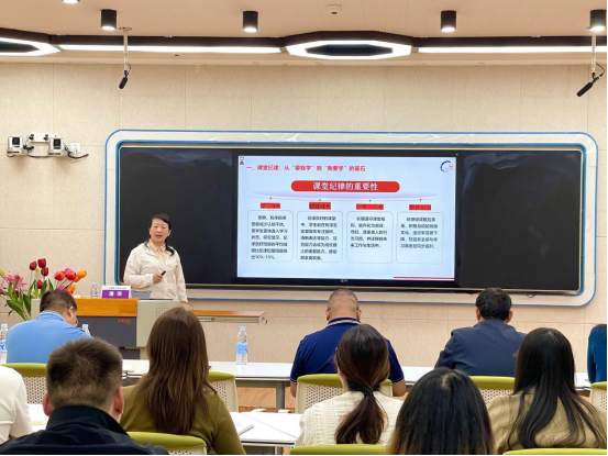 紧接着,学校党委委员、教学主管副校长潘琼为同学们带来了专业前沿及学习态度、学习方法系列讲座。她介绍了各专业前沿发展动态,让同学们了解到行业的最新趋势和技术,拓宽了同学们的专业视野。此外,针对学习态度和学习方法,结合自身经验和学校实际情况,为同学们提供了实用的建议和指导。她强调,同学们要树立积极主动的学习态度,掌握科学有效的学习方法,不断提升自己的专业素养和综合能力,为将来投身岗位打下坚实基础。并对教师提出教学要求“五要三戒”,要求教师在教学中既要注重专业能力的提升,又要关注学生的情感需求和全面发展,这也是新时代教师践行教育使命的重要遵循。