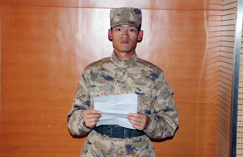 入伍新兵金利荣代表新兵发言
