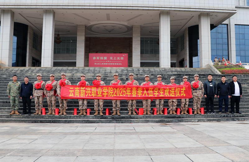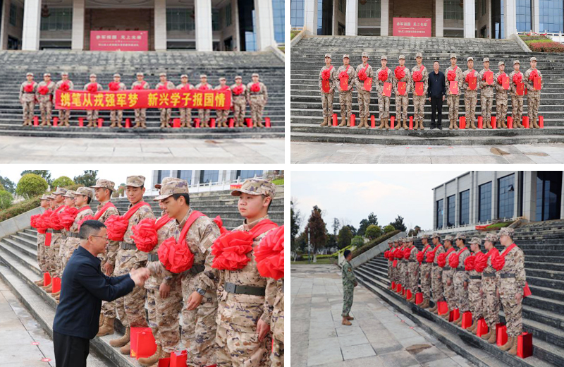 又是一年送兵季,放下稚嫩、扛起责任,换上军装、背起行囊、踏上征程、奔赴军营,他们选择在宝贵的年纪把青春献给国家。2025年3月15日下午,sunbet申搏官方网站党委委员、常务副校长李地新,学工部部长胡东,学工部副部长应江锋,学工部副部长李鹏春,武装部干事李荣、李静,辅导员代表杨建国一行前往嵩明役前集训训练基地,为2025年春季应征入伍的14名新兵举行欢送仪式。他们肩披红花,身姿挺拔,眼神坚定,洋溢着对军旅生活的期待与憧憬,整装待发,即将踏上保家卫国的新征程。新兵欢送仪式由sunbet申搏官方网站武装部专职副部长和德林主持。