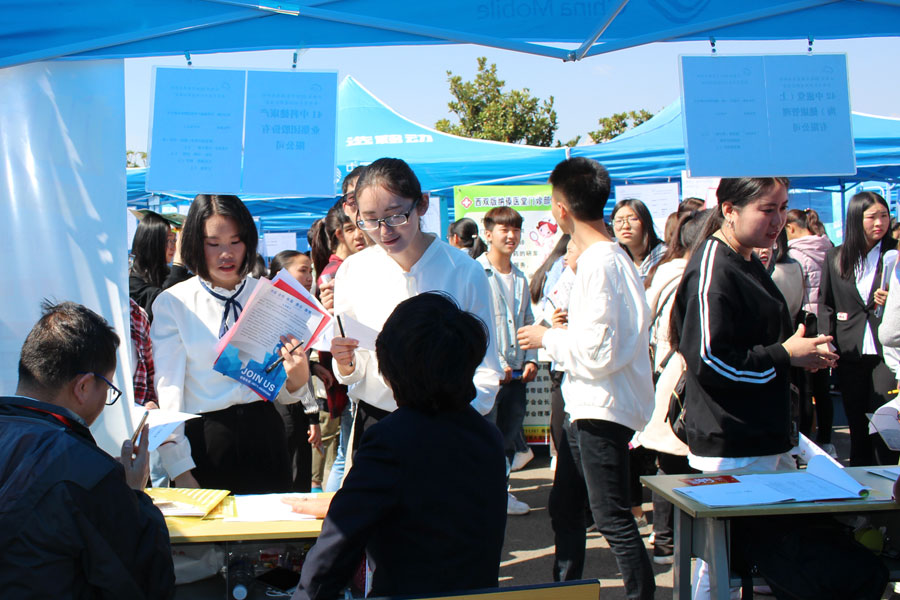 双向选择洽谈会现场人潮涌动,毕业生精心准备了个人求职简历,在心仪的企业展位前排队等候面试,学生们积极投递简历,自信、大方与用人单位进行深入、全面交流。该校领导以及省教育厅的相关工作人员也亲临现场,与用人单位代表亲切交谈,认真听取用人单位对毕业生的需求、评价,对学校人才培养的建议,并就进一步加强与用人单位之间的联系,为学生就业求职、技能提升等问题进行沟通。