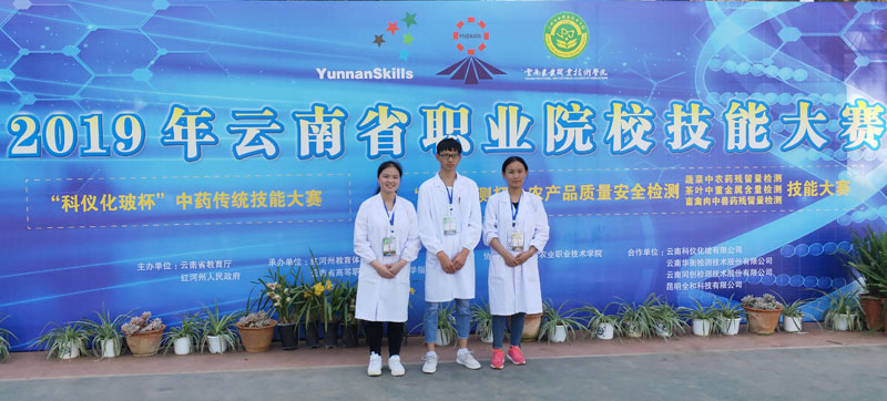 2019年4月12日——13日,2019年云南省职业院校“科仪化玻杯”中药传统技能大赛在云南农业职业技术学院隆重举行。本次大赛共有13家高职院校共计39名选手参赛,经过中药性状与真伪鉴别、中药调剂(包括审方)、中药显微鉴定和中药炮制4个项目的激烈角逐,药学院2016级高职中药班学生段育敏荣获一等奖、2016级高职中药班学生蒙建鑫荣获二等奖、2014级五年制中药制药技术班学生何洁方荣获二等奖。