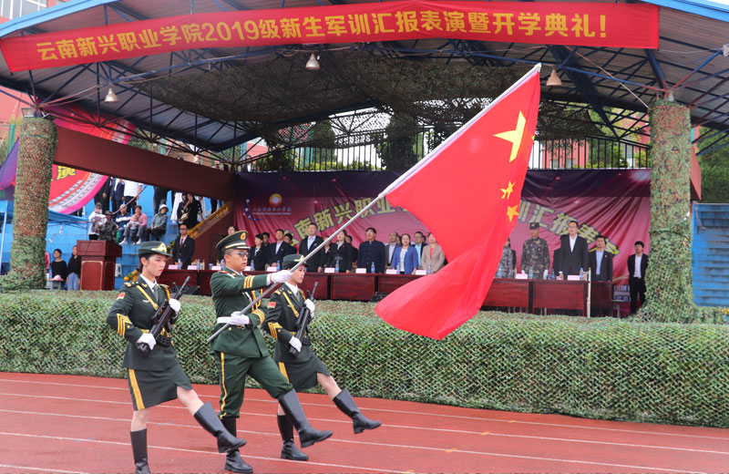 2019年9月6日上午9点,“sunbet申搏官方网站2019-2020学年开学典礼暨新生军训汇演”在学院田径场如期举行。典礼上莅临指导工作的有云南省委高校工委大学生工作部侯炳霞部长、云南省教育厅学校保卫后勤处杨勇科长、盘龙区人民武装部李龙副部长,参与来宾有校企合作单位的云幼集团张鹏董事长等,学院出席的领导有学院董事长、党委副书记、院长关祥祖同志,学院党委书记张毅永同志,学院副院长李地新、潘琼、李艳梅、李加磊同志,以及学院各处室负责同志和部分教师。