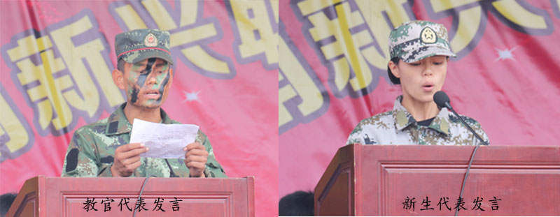 紧接着教官代表、教师代表、新生代表、校企合作单位代表发言: