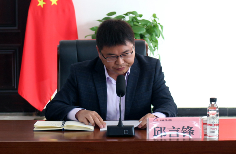 邱言锋同志作表态发言,坚决服从省委教育工委决定。他表示,在今后在工作中,一定把责任扛在肩上,做到旗帜鲜明讲政治,牢固树立“四个意识”、坚定“四个自信”、做到“两个维护”,用习近平新时代中国特色社会主义思想武装头脑,指导工作;做到履职尽责,勇于担当,不辜负组织的信任和师生的期待,严于律己,清正廉洁,抓好抓实党建工作,以高质量党建引领学校高质量发展。