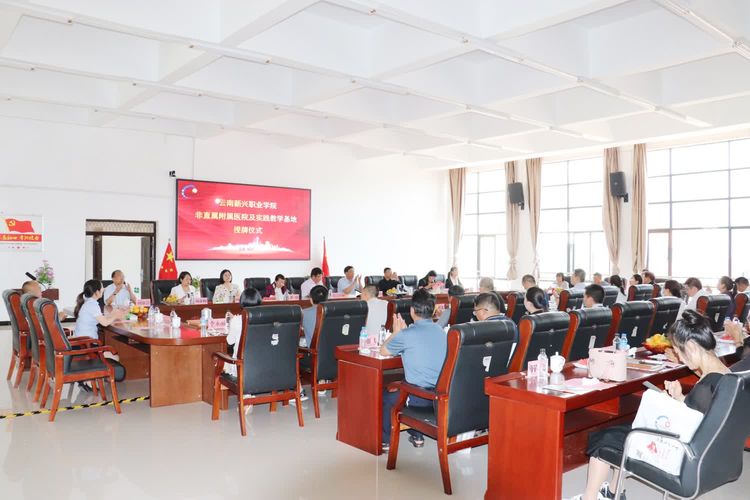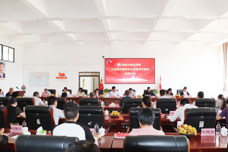 初夏,阳光正好,微风不燥,是一个美丽的季节。2023年5月31日,sunbet申搏官方网站在禄劝校区隆重举行非直属附属医院及实践教学基地单位领导到校考察交流暨授牌仪式。禄劝校区有19个医院、企业、学校代表参加,分别是:师宗县中医医院医务科主任刘玲、医教科主任周丽、禄劝县中医院副院长丁翔、禄劝忠爱医院副院长董宸溪、禄劝中西医结合医院院长陈加福、云南红旗养老综合服务有限公司院长郭昆、副院长付豫、昆明知青安宁疗护中心医院副院长辛丽琼、办公室主任李永丽、陆良县中医医院副院长赵明先、 禄劝彝族苗族自治县疾病预防控制中心副主任李华云、禄劝彝族苗族自治县转龙镇中心卫生院院长韩先平、禄劝彝族苗族自治县乌蒙乡卫生院院长王攀、禄劝彝族苗族自治县中屏镇卫生院院长杨存富、禄劝彝族苗族自治县中屏镇卫生院办公室主任李维斌、禄劝彝族苗族自治县九龙镇卫生院院长杨长卫、禄劝彝族苗族自治县团街镇卫生院院长王仁凤、禄劝彝族苗族自治县翠华镇卫生院院长张吉文、禄劝彝族苗族自治县雪山乡卫生院院长史伟、禄劝彝族苗族自治县民族中学副书记唐宇勇、禄劝县西点实验中学校长高龙、禄劝彝族苗族自治县民族小学校长杨文华、教学副校长张宗有、教务主任时继玲、禄劝彝族苗族自治县红军小学教学副校长王雁飞、禄劝彝族苗族自治县皎平渡镇中心学校德育主任陈阳、禄劝彝族苗族自治县崇德小学校长刘光梅等。