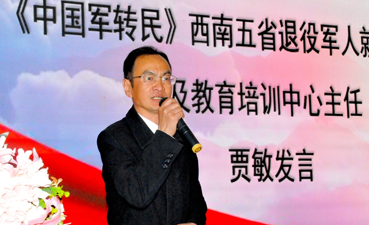 (国家国防科技工业局《中国军转民》杂志社常务副总编、国家国防科技工业局《中国军转民》信息网总编辑贾敏先生致辞)