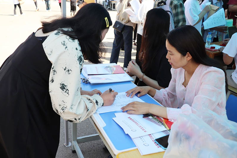 招聘会如火如茶进行,学生带着自己精心准备的简历,到现场与用人单位进行交流洽谈,积极主动了解用人单位情况,现场积极踊跃报名,投简历,寻找适合自己的岗位。