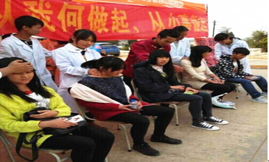2014年12月5日sunbet申搏团委社团联合会中医协会、护理协会在食堂门口,开展了以“弘扬文明经典、传承国医精髓”的主题活动,此次活动的主要内容包括:推拿按摩、针灸、火罐、测量血压等,服务对象是全院师生及校内工作人员。