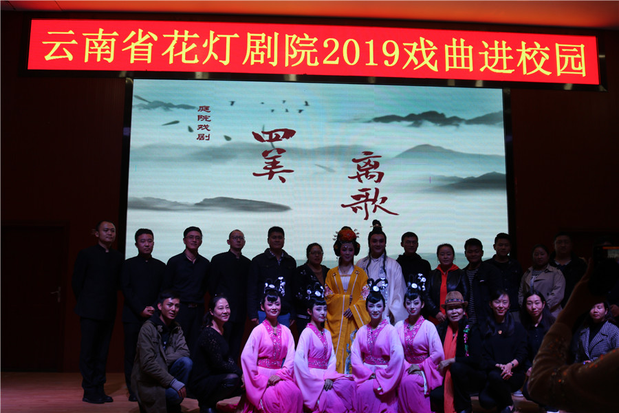 戏曲艺术走进校园,中国戏剧梅花奖得主李丹瑜,将一人分饰四角----西施、貂蝉、昭君、杨贵妃,用花灯、滇剧、昆曲、京剧娓娓道来一曲美人离歌,诠释她们如歌如泣的人物命运和家国情怀。