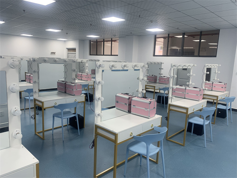 美容实训室分别配有美容床、化妆台、奥桑喷雾仪、超声波导入仪、美容放大镜灯、韩国小气泡等多种现代美容设备,总价值约11.5万元。
